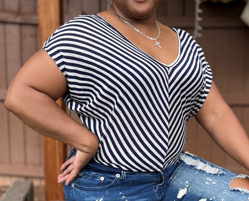 NAVY/GRAY CHEVRON CROP TOP Size: L (New w/Tags)