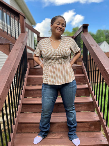 PEPLUM BLOUSE WITH CHEVRON STRIPES: Size: Large