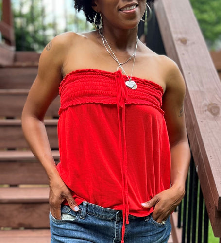 ELASTIC BANDOU BABYDOLL HALTER TOP: Size - M