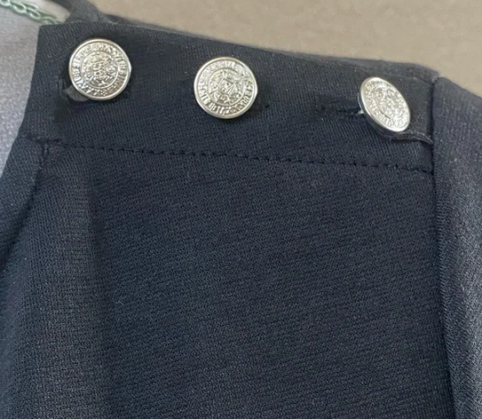 - Silver accent buttons on side of collar